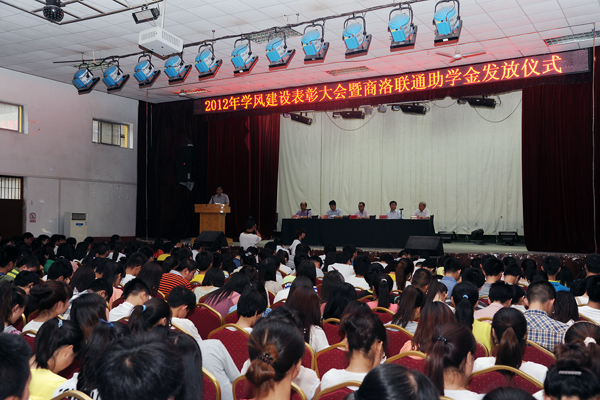 為了進(jìn)一步推進(jìn)學(xué)風(fēng)建設(shè)和學(xué)生自主創(chuàng)業(yè)工作,營(yíng)造良好的育人氛圍,5月22日下午,我校隆重召開(kāi)學(xué)風(fēng)建設(shè)表彰大會(huì),對(duì)2012年度國(guó)家獎(jiǎng)學(xué)金、國(guó)家勵(lì)志獎(jiǎng)學(xué)金獲獎(jiǎng)學(xué)生進(jìn)行表彰,對(duì)田亦柏等5名自主創(chuàng)業(yè)大學(xué)生進(jìn)行獎(jiǎng)勵(lì),對(duì)2012年學(xué)風(fēng)建設(shè)先進(jìn)集體進(jìn)行表彰,同時(shí)為程時(shí)妍等20名2013年商洛聯(lián)通助學(xué)金受助學(xué)生發(fā)放了助學(xué)金。校黨委書(shū)記張繼良、院長(zhǎng)張景書(shū),商洛聯(lián)通公司黨委書(shū)記溫長(zhǎng)山,校黨委副書(shū)記左曉民、副院長(zhǎng)劉建林出席大會(huì)。左曉民在會(huì)上宣讀了學(xué)校表彰決定,劉建林主持大會(huì)。
