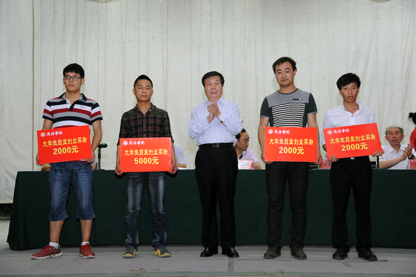 張景書(shū)在講話中向受表彰、受資助學(xué)生,并通過(guò)他們向全體在校學(xué)生提出了四點(diǎn)希望:一是希望同學(xué)們立志高遠(yuǎn),樹(shù)立堅(jiān)定理想信念,及早確立努力學(xué)習(xí)、不斷超越自我的奮斗目標(biāo),早日實(shí)現(xiàn)美好的理想;二是希望同學(xué)們抓住大學(xué)幾年的機(jī)會(huì),在??炭鄬W(xué)習(xí),練就服務(wù)祖國(guó)、報(bào)效祖國(guó)的本領(lǐng),把自己塑造成為國(guó)家建設(shè)需要的應(yīng)用型人才,為實(shí)現(xiàn)中國(guó)夢(mèng)貢獻(xiàn)自己的力量;三是希望同學(xué)們?cè)鰪?qiáng)創(chuàng)業(yè)意識(shí)、創(chuàng)業(yè)精神,把自己塑造成為具有創(chuàng)新思維和創(chuàng)業(yè)能力的高素質(zhì)創(chuàng)新型人才,通過(guò)創(chuàng)新創(chuàng)業(yè)服務(wù)創(chuàng)新型國(guó)家建設(shè),實(shí)現(xiàn)自身價(jià)值;四是希望同學(xué)們以身邊的優(yōu)秀學(xué)生為榜樣,學(xué)習(xí)先進(jìn),錘煉高尚品格,積極倡導(dǎo)社會(huì)文明新風(fēng),積極參加志愿服務(wù),主動(dòng)承擔(dān)社會(huì)責(zé)任,為學(xué)校發(fā)展和社會(huì)進(jìn)步再立新功。