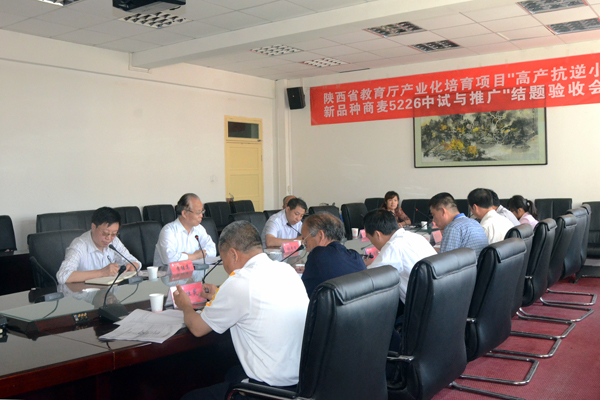 陜西省教育廳科研處副處長楊曉研指導(dǎo)驗收。院長張景書會見了項目驗收委員會專家。副院長陳永莊代表學(xué)院陪同驗收??蒲刑幪庨L李繼高,生物醫(yī)藥工程系主任王新軍,院小麥育種專家于浩世及項目組成員參加上述活動。