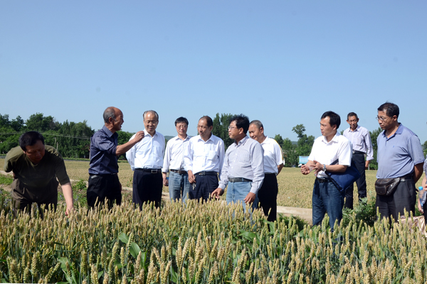 6月2日,由西北農(nóng)林科技大學(xué)教授張保軍任組長,西北農(nóng)林科技大學(xué)教授張正茂、商洛市農(nóng)業(yè)局高級農(nóng)藝師葉贇、商洛市農(nóng)科所高級農(nóng)藝師楊寶來、商洛市種子管理站高級農(nóng)藝師楊灶靈為成員的項目驗收委員會,冒著酷暑驅(qū)車來到“商麥5226”示范點(diǎn)洛南縣寺坡鎮(zhèn),現(xiàn)場觀摩了小麥的長勢和推廣種植情況,聽取了種植戶的評價。