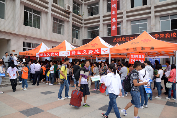 為保證新生順利入學(xué),學(xué)校在火車站、汽車站和校門口分別設(shè)立迎新接待點(diǎn),為新生和家長們提供服務(wù)。校內(nèi)設(shè)立了新生咨詢處、行李寄存處、公安執(zhí)勤處、醫(yī)療服務(wù)處、家長休息區(qū),還專門為家境貧困的學(xué)生開放“綠色通道”。路口醒目的位置都有各系的迎新指示牌,志愿者們穿梭其中為新生提供各類咨詢和幫助。