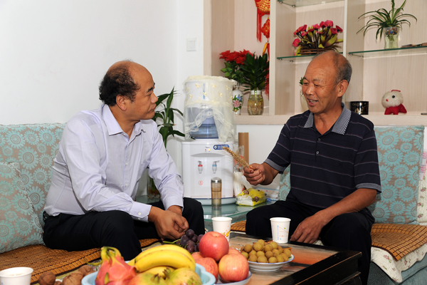 在于浩世家中,劉建林詳細(xì)了解了于浩世在小麥育種研究中取得的最新成果,并向他為學(xué)校科研服務(wù)地方工作做出的貢獻(xiàn)表示感謝。劉建林說,小麥育種工作是我校改革發(fā)展中涌現(xiàn)出的一個亮點(diǎn),今后要把這項(xiàng)工作深入持續(xù)下去,可以考慮成立商洛學(xué)院良種繁育中心。希望于老師繼續(xù)作為育種工作的帶頭人,培養(yǎng)一支精干的科研團(tuán)隊(duì),為我校的發(fā)展凝煉特色。劉建林要求生物醫(yī)藥工程系高度重視和支持此項(xiàng)工作,積極協(xié)調(diào)、解決實(shí)驗(yàn)田和實(shí)驗(yàn)室問題,再出新成果、多出好成果。