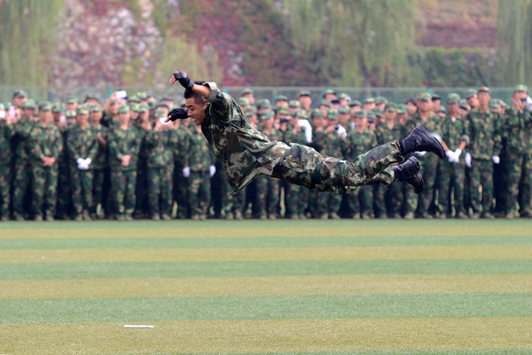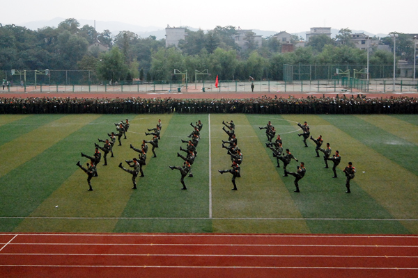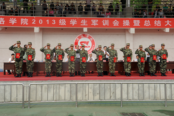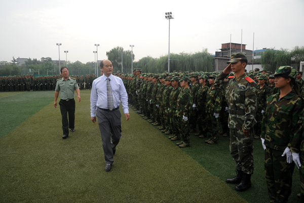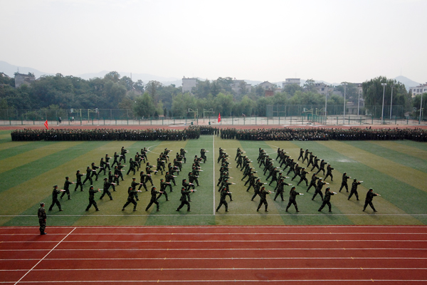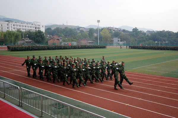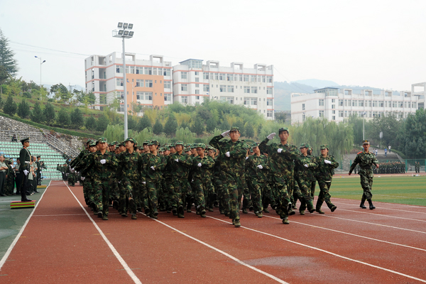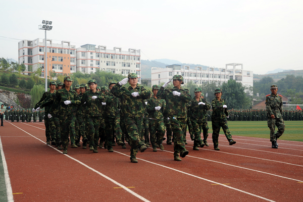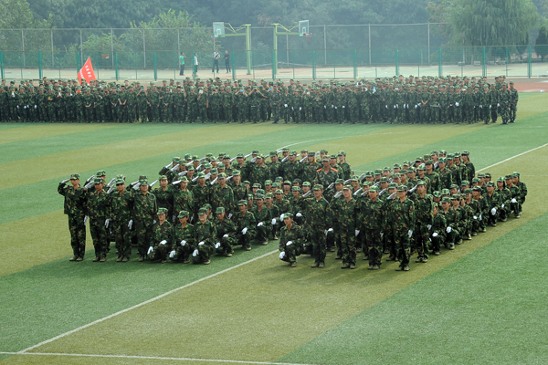2013級(jí)學(xué)生軍訓(xùn)自9月7日開始,為期12天。完成了隊(duì)列隊(duì)形訓(xùn)練、整理內(nèi)務(wù)訓(xùn)練等規(guī)定內(nèi)容,并于9月16日進(jìn)行了15公里行軍訓(xùn)練。按照學(xué)校安排,軍訓(xùn)結(jié)束后,2013級(jí)新生將開始軍事理論學(xué)習(xí),接受國防知識(shí)教育。