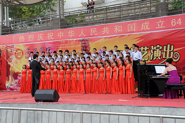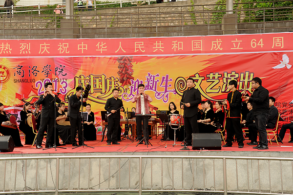 為慶祝新中國(guó)第64個(gè)生日,迎接2013級(jí)新生,9月26日下午,我校舉辦了“2013慶國(guó)慶·迎新生”大型文藝演出。西安音樂學(xué)院70余名師生應(yīng)邀友情出演,和我校師生、商洛劇團(tuán)青年歌手李淼輪番登臺(tái)獻(xiàn)藝,表演了民樂合奏、歌伴舞、獨(dú)唱、舞蹈、健身秧歌等19個(gè)節(jié)目。熱烈祥和的氣氛、清新高雅的藝術(shù)為校園帶來了節(jié)日的歡樂和文化的盛宴。
