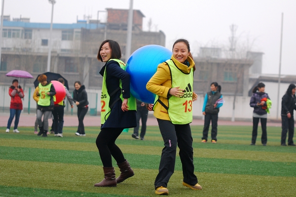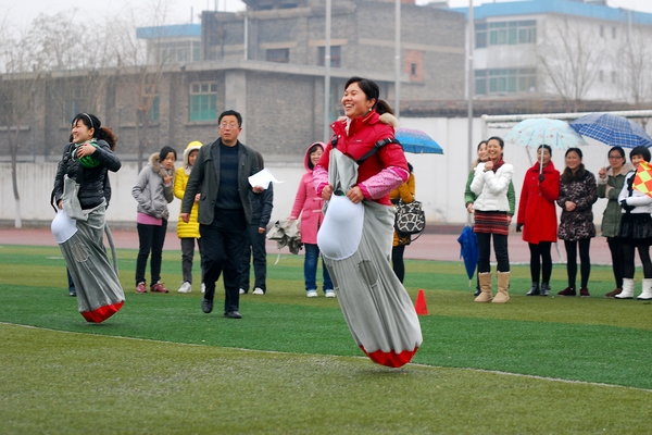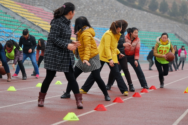 隨后舉辦的趣味運(yùn)動會設(shè)有“海底撈月”、“袋鼠跳”、背球接力等三個集體項目,單人跳繩和單人踢毽兩個個人項目。平日里緊張工作的女教職工們放松身心,一改嚴(yán)肅的面孔,輕裝上陣,踴躍參賽。男教職工們也興致勃勃地來到活動現(xiàn)場為女教職工們出謀劃策、加油喝彩?;顒蝇F(xiàn)場笑聲不斷,氛圍輕松愉悅,充分展示了我校女教職工團(tuán)結(jié)、向上、開朗、活潑的風(fēng)采魅力。
