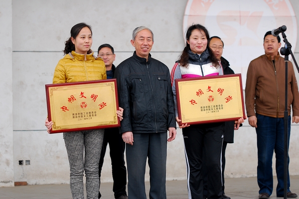 在第104個“三八”國際勞動婦女節(jié)即將到來之際,我校于3月5日下午,召開“三八”婦女節(jié)表彰會及女教職工趣味運(yùn)動會,對一年來在教學(xué)管理各項工作中做出突出貢獻(xiàn)的先進(jìn)女教職工集體和個人進(jìn)行表彰,以一場妙趣橫生的趣味運(yùn)動會喜迎婦女節(jié)。校黨委副書記、工會主席左曉民出席表彰會,并向獲獎集體和個人頒發(fā)了獎牌與證書。校工會委員、女工委員,工會各分會主席和女教職工參加了表彰會。