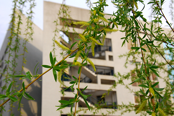 四月的校園,萬物復(fù)蘇,氣溫回暖,各種植物退下了冬日的臃腫,換上了充滿生機的春裝,校園里一派暖春的景象。柳樹初生的嫩芽隨風(fēng)搖曳,些許杏花展露微白的花蕊,桃花偷偷羞紅的笑臉,舞活了整個生機盎然的校園。同學(xué)們享受著鮮花和暖陽,在春光明媚的校園里讀書、學(xué)習(xí);趁著春意踏青、春游,用手機和相機留下美好的瞬間,在操場上鍛煉的人也漸漸增多。