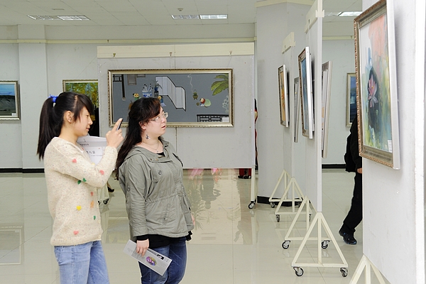 展廳內人流如潮,我校師生紛紛前來參觀,并不時拿出相機、手機拍照。王思懷、魏書堂對楊靜的作品給予了高度評價,并希望楊靜和廣大教師們能以作品感染學生,用創(chuàng)作中的領悟教育學生,在提高自身業(yè)務能力、科研水平的同時,培養(yǎng)出一批批高素質人才。藝術學院美術學專業(yè)的一位學生說,參觀畫展后覺得受益匪淺,楊靜老師通過高超的繪畫技巧和個人獨特的藝術修為,將東方精神與當代藝術完美結合,給大家?guī)砹艘环N無限的想象之美,本次畫展不但為同學們提供了一次非常好的學習機會,更激發(fā)了他們從事藝術學習和創(chuàng)作的熱情。
