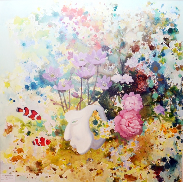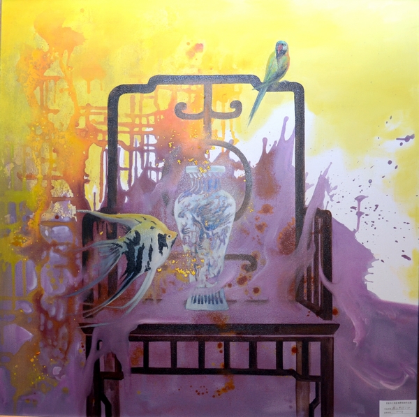 楊靜的作品多以意象風景為主,魚、飛鳥、椅子、面具、鮮花常常成為畫面中的主要視覺符號,意象化的表述方式是其繪畫語言特點,獨具視覺張力的畫面背后蘊藏著或浪漫或神秘或抒情的藝術獨白。她的作品,一切似乎都是從畫布的縫隙間不經意地流淌、蔓延而出,生發(fā)、幻化出諸多“意外之境”,堅實的文化底蘊與繪畫技能,獨到的藝術眼界和隨機靈動的“深思妙悟”,賦予畫面中各種意象生命,讓畫內的意象引領聯(lián)想畫外意象,達成“象外之象,景外之景”的效果,結合自己的生命體驗詮釋對當代人及其生存環(huán)境的思索與追問,在虛實相生之間營造一個全新的美好境界。本次畫展共展出作品50多件,且全部被3家藝術投資機構收藏。