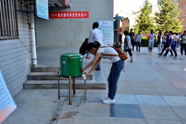 今年我校在多個新生接待點設(shè)立了飲水處和休息處,為前來報到的學(xué)生和家長提供方便的休息場地,讓新生從初來大學(xué)就體驗到校園的溫情。