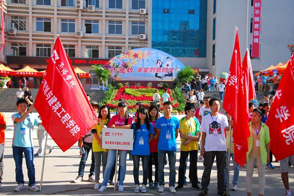 一踏進校園,花卉的芳香隨秋風(fēng)撲面而來,艷紅色的熱氣球拉起印有“讓青春的笑臉,寫滿激情的詩篇”“讓青春的笑聲,點綴和諧的樂章”等6條橫幅,歡迎新生入學(xué)。同時,各院還懸掛起了“今日我以母校為榮,明天母校為我驕傲”“寒窗十年終圓夢今日重新起航,壯志豪情譜新篇我們攜手共進”等標語,盡顯莘莘學(xué)子風(fēng)華正茂之氣。
