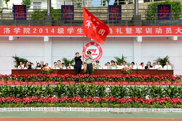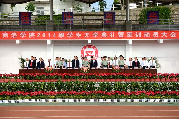 9月5日,我校隆重舉行2014級新生開學(xué)典禮暨軍訓(xùn)動(dòng)員大會(huì)。校領(lǐng)導(dǎo)張景書、劉建林、左曉民、王思懷、魏書堂,解放軍西安政治學(xué)院政治部主任徐自軍大校,2014級學(xué)生軍訓(xùn)團(tuán)團(tuán)長、解放軍西安政治學(xué)院楊定友大校,商州區(qū)武裝部部長關(guān)海鵬出席了大會(huì)。校黨委書記張景書向承訓(xùn)教官授2014級學(xué)生軍訓(xùn)團(tuán)團(tuán)旗,校黨委副書記、校長劉建林作了重要講話。大會(huì)由校黨委副書記左曉民主持。各院部黨政負(fù)責(zé)人、各職能部門負(fù)責(zé)人與2014級新生參加了大會(huì)。