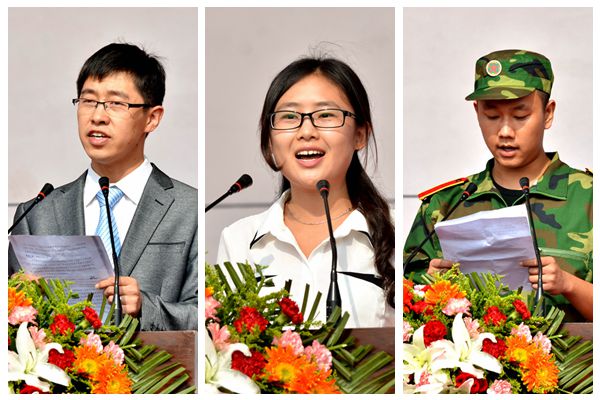 城鄉(xiāng)規(guī)劃與建筑工程學(xué)院教師趙培博士,2012級電子信息與電氣工程學(xué)院宋丹,2014級語言文化傳播學(xué)院學(xué)生鄢守航分別代表學(xué)校教師、在校生和新生作了發(fā)言。