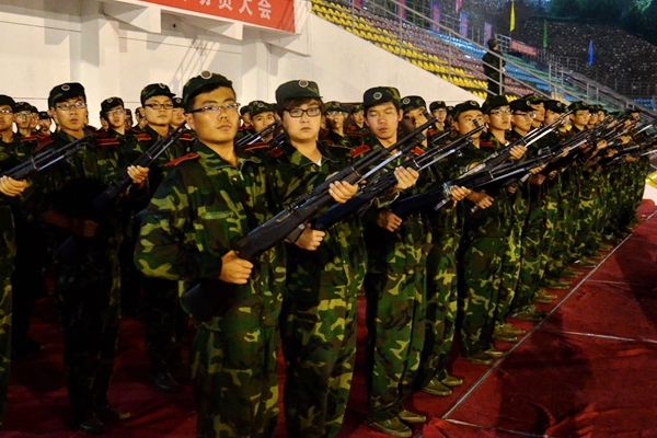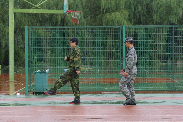 2014級新生軍訓已接近尾聲,在最后的幾天里,同學們主要訓練了軍體拳、花樣隊列、持槍操練等項目。雖然在訓練間隙還伴有秋雨,但同學們的熱情依然高漲,訓練十分認真,絲毫沒有松懈。