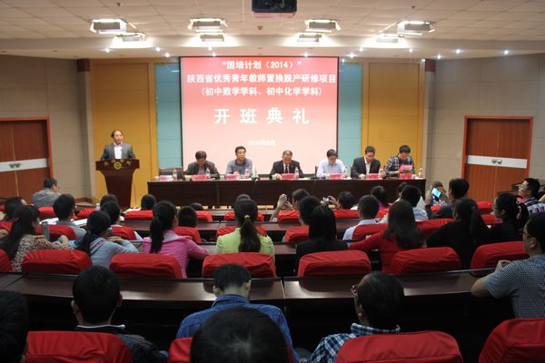 9月24日下午,我校舉辦“國培計(jì)劃(2014)”——陜西省優(yōu)秀青年教師置換脫產(chǎn)研修項(xiàng)目初中數(shù)學(xué)學(xué)科、初中化學(xué)學(xué)科研修班開班典禮。校黨委委員、紀(jì)委書記、“國培計(jì)劃”培訓(xùn)項(xiàng)目領(lǐng)導(dǎo)小組組長王思懷教授出席開班典禮并致辭。陜西省“國培計(jì)劃”項(xiàng)目執(zhí)行辦公室項(xiàng)目部主任蘇理,商洛市教育局副局長周春榮,教務(wù)處處長、初中數(shù)學(xué)學(xué)科項(xiàng)目首席專家李超教授,化學(xué)工程與現(xiàn)代材料學(xué)院院長、初中化學(xué)學(xué)科項(xiàng)目首席專家周春生教授,商洛市教育局基礎(chǔ)教育科科長張斌出席開班典禮。開班典禮由繼續(xù)教育學(xué)院院長、“國培計(jì)劃”培訓(xùn)項(xiàng)目領(lǐng)導(dǎo)小組副組長任少儉主持。