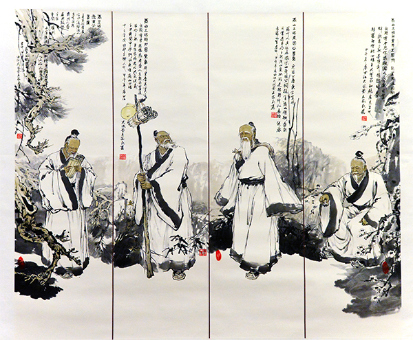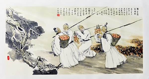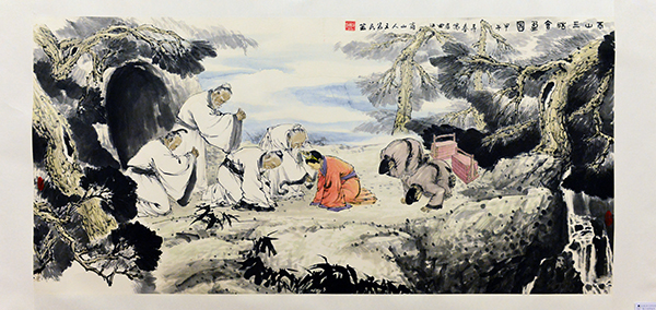 本次畫展共展出以王家民家鄉(xiāng)商山洛水風(fēng)光景致以及歷史故事為題材的書畫作品70幅。其精品力作展示出了商洛山水之美和商山洛水特有的靈秀之氣,尤其是其商山四皓系列畫,通過生動具體的故事內(nèi)容、生活情景和人物形象把遙遠(yuǎn)而模糊的故事生動地再現(xiàn)出來,詮釋著“從歷史走向未來,從延續(xù)民族文化血脈中開拓前進(jìn)”的精神內(nèi)涵,具有深厚的文化底蘊(yùn)。