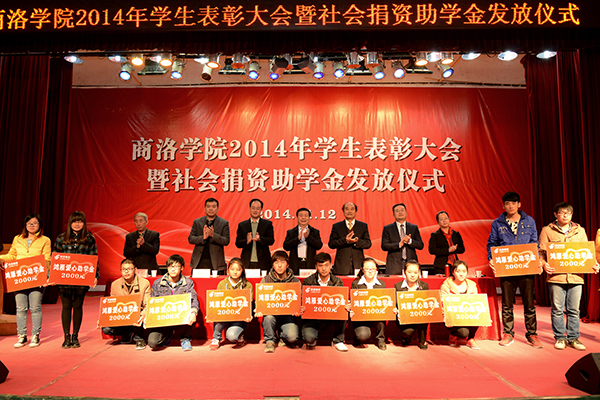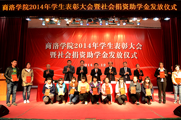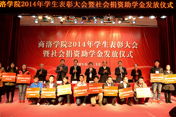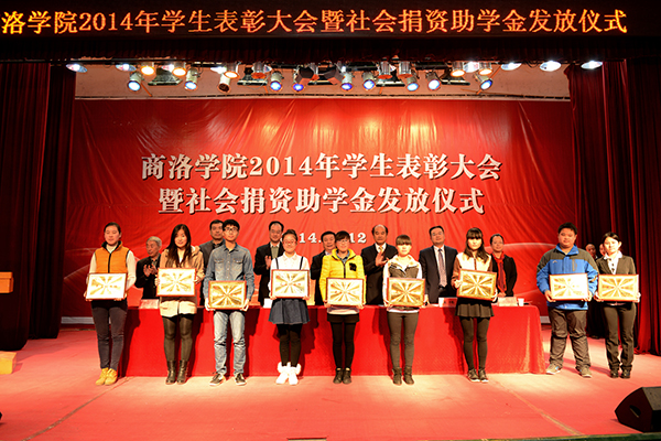 學(xué)生處處長(zhǎng)石啟英宣讀了關(guān)于表彰2013-2014學(xué)年三好學(xué)生、優(yōu)秀學(xué)生干部、先進(jìn)班集體的決定。商洛供電局副局長(zhǎng)趙紅強(qiáng)宣讀了2014年“國(guó)網(wǎng)商洛電力”助學(xué)金受助學(xué)生名單,中國(guó)郵政商洛分公司市場(chǎng)部主任王冬宣讀了2014年商洛郵政“鴻雁愛(ài)心”助學(xué)金受助學(xué)生名單,中國(guó)聯(lián)通商洛分公司副總經(jīng)理陳安民宣讀了2014年商洛聯(lián)通助學(xué)金受助學(xué)生名單,中國(guó)電信商洛分公司副總經(jīng)理胡萬(wàn)社宣讀了2014年商洛電信天翼助學(xué)金受助學(xué)生名單。我校共有140名學(xué)生受到資助。