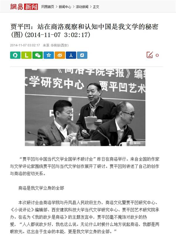 網(wǎng)易:《賈平凹:站在商洛觀察和認(rèn)知中國是我文學(xué)的秘密》