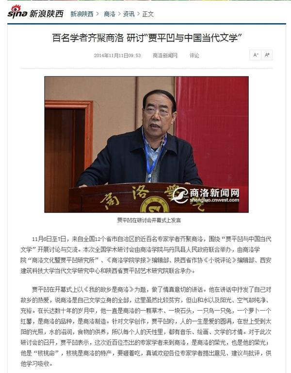 新浪:《百名學(xué)者齊聚商洛 研討“賈平凹與中國當(dāng)代文學(xué)”》