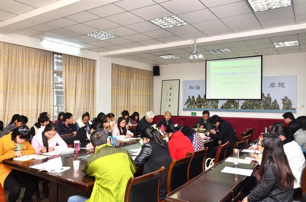 左曉民為師生作了《國學的昔日輝煌與當代救贖》的主題報告。報告從國學的昔日輝煌、發(fā)展歷程、命運變遷以及商洛學院國學社的成立與思考等四個方面進行闡述。報告認為,國學的命運與中華民族的命運是一致的,在中華民族的偉大復(fù)興中,國學起著一種不可替代的作用。我們今天要堅持以馬克思主義為指導思想,立足于國學文化的深厚根基,找到國學與馬克思主義主體思想的結(jié)合點。