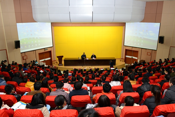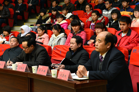 12月17日,著名刑法學(xué)家、西北政法大學(xué)校長(zhǎng)、博士生導(dǎo)師賈宇教授應(yīng)邀來(lái)到我校,為師生們做了題為《依法治國(guó)的宏偉藍(lán)圖和建設(shè)路徑》的專題報(bào)告。報(bào)告從十八屆四中全會(huì)描繪依法治國(guó)宏偉藍(lán)圖的重大意義、落實(shí)依法治國(guó)的建設(shè)路徑等方面作了深入解讀。校長(zhǎng)、黨委副書(shū)記劉建林,黨委副書(shū)記左曉民,紀(jì)委書(shū)記王思懷,副校長(zhǎng)魏書(shū)堂,全??萍?jí)以上領(lǐng)導(dǎo)干部、思政課教師、學(xué)生干部和商洛市中級(jí)人民法院領(lǐng)導(dǎo)和干部聽(tīng)取了報(bào)告。報(bào)告會(huì)由左曉民主持。
