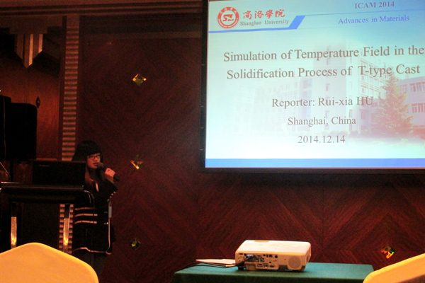 12月13-14日,由華東理工大學(xué)、浙江大學(xué)等主辦的2014先進(jìn)材料國際學(xué)術(shù)會議(ICAM2014)在上海召開,來自10多個(gè)國家的100余位知名學(xué)者參加會議。我校電子信息與電氣工程學(xué)院物理學(xué)專業(yè)2012級學(xué)生胡瑞霞,電子信息工程專業(yè)2013級學(xué)生周穎參加了本次會議,胡瑞霞在會上用英語作了學(xué)術(shù)交流報(bào)告。