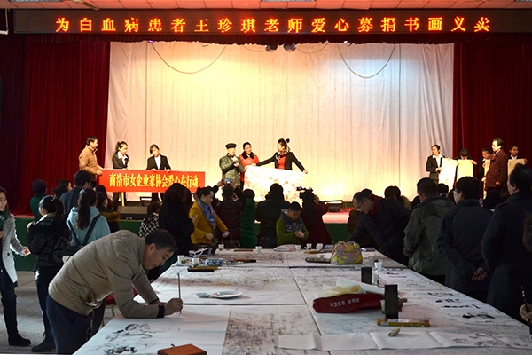 12月21日,由藝術(shù)學院和商洛市美術(shù)家協(xié)會聯(lián)合舉辦的“為白血病患者王珍琪老師愛心募捐書畫義賣”活動在我校大學生活動中心舉行,義賣的百余幅書畫作品均來自我校師生及社會各界愛心人士,商洛市著名書畫家還現(xiàn)場現(xiàn)場揮毫潑墨,進行了義賣捐贈。