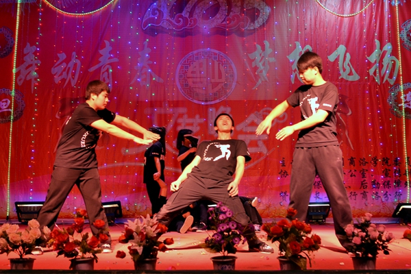 當(dāng)晚的大學(xué)生活動(dòng)中心張燈結(jié)彩,喜氣洋洋,洋溢著歡快的節(jié)日氣氛。晚會(huì)在《讓我們舞起來》歌伴舞的精彩表演中拉開序幕,歌舞、相聲、小品、魔術(shù)、朗誦等16個(gè)形式多樣、精彩紛呈的節(jié)目贏得了臺(tái)下觀眾們的陣陣喝彩。其中,由街舞學(xué)社選送的舞蹈《keep On Dancing》,用動(dòng)感的舞步和滑稽的肢體語言顯示了同學(xué)們豐富多彩的校園生活和活潑陽光的青春風(fēng)采;漢服學(xué)社的同學(xué)們邁著輕快靈動(dòng)、曼妙翩躚舞姿,用一支《重回漢唐》展示了漢代文化的博大精深;相聲《學(xué)富五車》語言詼諧幽默,表演者們精彩的表演贏得了全場(chǎng)熱烈的掌聲;被同學(xué)們冠以“樓姨”昵稱的宿舍管理員用一場(chǎng)《歡樂草原》的舞蹈將晚會(huì)氣氛的推向高潮。藝術(shù)學(xué)院的五位老師一首富有戲劇性的歌曲聯(lián)唱,展現(xiàn)了我校老師嚴(yán)肅又不失活潑的精神風(fēng)貌。