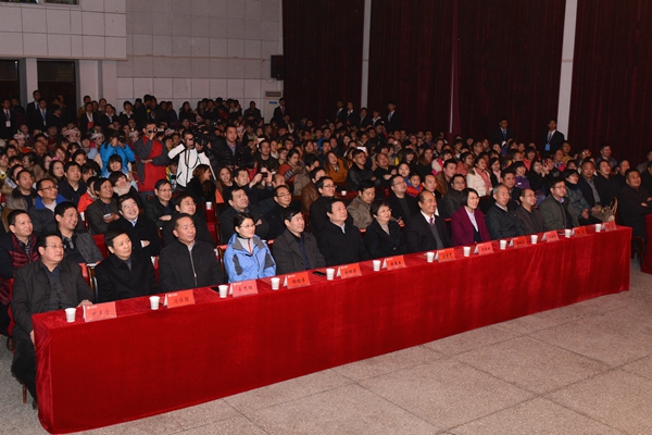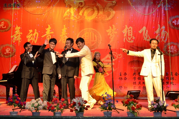 馬蹄留勝跡,羊毫譜新歌。12月30日晚,我校2015年度元旦文藝晚會(huì)在大學(xué)生活動(dòng)中心隆重舉行。商洛市副市長(zhǎng)劉榮賢,校黨委書記張景書、校長(zhǎng)劉建林、黨委副書記左曉民、紀(jì)委書記王思懷、副校長(zhǎng)魏書堂,商洛市教育局局長(zhǎng)胡棟梁、共青團(tuán)商洛市委書記曹艷萍、商州區(qū)政府副區(qū)長(zhǎng)楊俊芬,商洛供電局、中國銀行商洛分行、中國建設(shè)銀行商洛分行、中國郵政商洛分公司、中國移動(dòng)商洛分公司、中國聯(lián)通商洛分公司、中國電信商洛分公司、商洛市劇團(tuán)、中國移動(dòng)商州分公司有關(guān)領(lǐng)導(dǎo)同師生們一起觀看了演出。