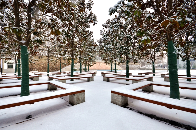 1月27日到31日,陜西迎來了今年首場降雪。紛紛揚(yáng)揚(yáng)的雪花將我校校園裝點(diǎn)得銀裝素裹,別有一番優(yōu)雅恬靜的魅力。雪后初晴,校園里一片亮白,讓新落成的觀景亭等建筑群更添一份詩情畫意。雪中的商洛學(xué)院美不勝收,令人陶醉。