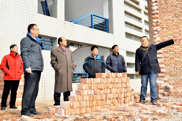 2月3日,校長劉建林,副校長范新會、劉寶盈在學(xué)校辦公室、基建處、后勤保障處等相關(guān)部門負責(zé)人陪同下,巡視檢查校園基建工程進展情況。