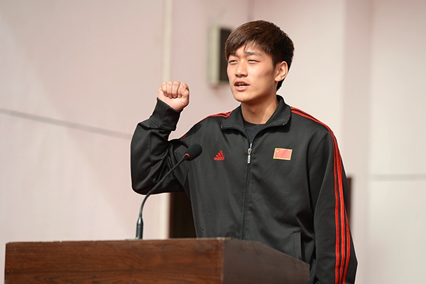 運(yùn)動(dòng)員代表王彥哲、裁判員代表馮俊婷,分別代表全體運(yùn)動(dòng)員、裁判員宣誓。