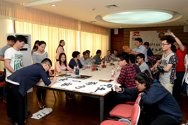 我校書畫協(xié)會還向南開科技大學(xué)兩岸文化交流研習(xí)團師生贈送了現(xiàn)場創(chuàng)作的“兩岸學(xué)子一家親”“富貴牡丹”等書畫作品,以作紀(jì)念。