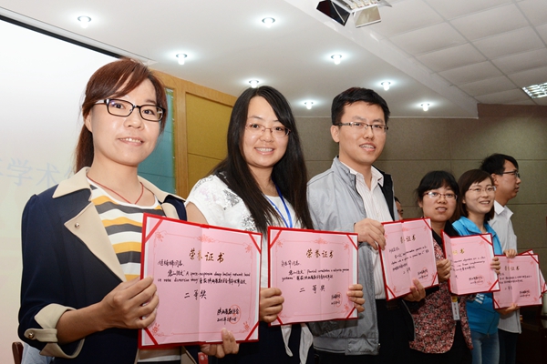 理事會評選出了2014年陜西省數(shù)學(xué)會青年教師優(yōu)秀論文獎。徐宗本院士、劉寶盈校長、理事長趙彬、副理事長徐偉分別給獲獎?wù)哳C獎。