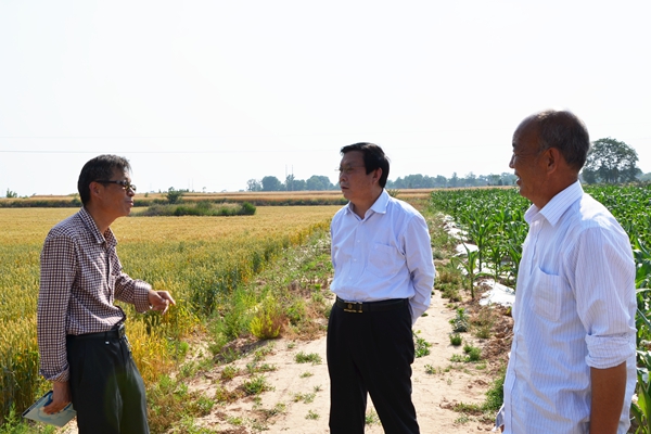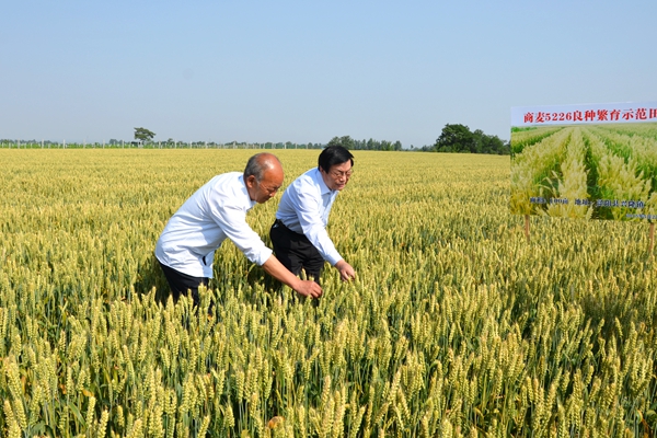 在咸陽市涇陽縣興隆鎮(zhèn),張景書深入商麥“5226”示范田,與商麥種植示范戶親切交談,觀摩了商麥的抗旱性、長勢、落黃及籽粒飽滿情況,了解了商麥“5226”在今年多雨季節(jié)的抗病情況、產量及推廣面積。涇陽縣現(xiàn)代種業(yè)公司經理藏喜詳細介紹了商麥“5226”在渭北旱塬、甘肅隴南的實驗情況,并表示“商麥5226”有望成為渭北旱塬地區(qū)小麥主栽品種。