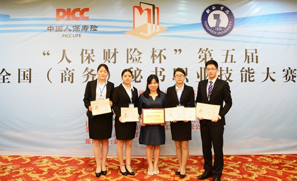 5月29至31日,第五屆全國(商務(wù))秘書職業(yè)技能大賽在貴州省銅仁學(xué)院舉行,全國35所高校組隊參加了比賽。我校語言文化傳播學(xué)院秘書學(xué)系組隊參加比賽,取得了優(yōu)異成績,獲得了團(tuán)體三等獎,張曉倩副教授被評為“優(yōu)秀指導(dǎo)教師”;2012級秘書學(xué)專業(yè)學(xué)生楊天樂榮獲了“思維與口才展示”單項一等獎、個人三等獎,楊燕榮獲“思維與口才展示”單項二等獎、個人三等獎,張婷和陳緒娜分別榮獲個人三等獎。