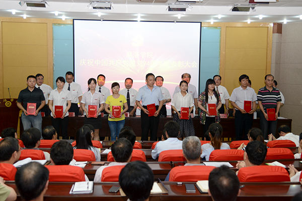 7月1日,我校隆重召開(kāi)慶祝中國(guó)共產(chǎn)黨建黨94周年暨“七一”表彰大會(huì)。校領(lǐng)導(dǎo)張景書(shū)、劉建林、王思懷、魏書(shū)堂、彭虎軍、范新會(huì)、劉寶盈出席大會(huì),并為獲表彰的優(yōu)秀黨組織和個(gè)人頒獎(jiǎng)。校黨委書(shū)記張景書(shū)作重要講話(huà),黨委副書(shū)記、校長(zhǎng)劉建林主持大會(huì)。全??萍?jí)以上干部、離退休黨員代表、學(xué)生黨員代表參加了大會(huì)。