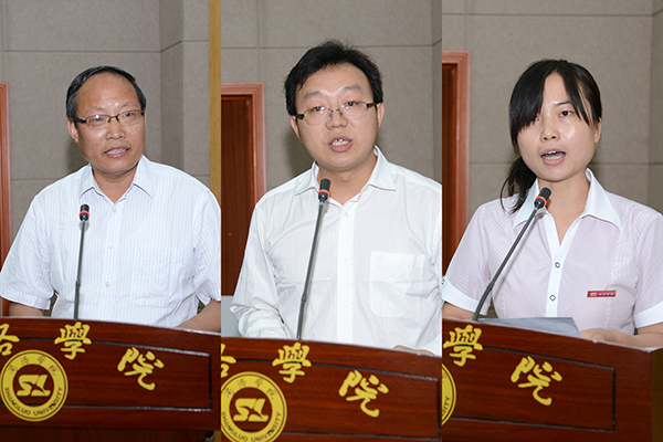 文傳學(xué)院黨總支書(shū)記王正良、電信學(xué)院教師袁訓(xùn)鋒、生物學(xué)院輔導(dǎo)員王珊分別代表受表彰的先進(jìn)集體和個(gè)人作了大會(huì)發(fā)言。