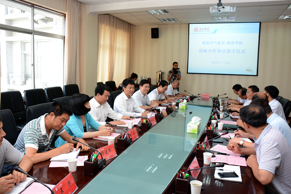 陳道輝宣讀了《商洛市氣象局 商洛學(xué)院戰(zhàn)略合作協(xié)議》。根據(jù)協(xié)議,我校與商洛市氣象局在充分發(fā)揮科技、教育和人才資源優(yōu)勢的基礎(chǔ)上,針對陜南移民搬遷重大工程各種規(guī)劃等項(xiàng)目聯(lián)合開展氣候可行性論證和氣候?yàn)?zāi)害風(fēng)險評估;針對建設(shè)“生態(tài)商洛、宜居商洛”過程中的環(huán)境問題合作開展研究并聯(lián)合申報項(xiàng)目;針對建設(shè)秦嶺生態(tài)示范城市及特色產(chǎn)業(yè)發(fā)展的需要開展氣象災(zāi)害預(yù)警、災(zāi)害發(fā)生規(guī)律研究及特色產(chǎn)品品質(zhì)品種氣候認(rèn)證;充分發(fā)揮我校水資源研究成果優(yōu)勢,支持南水北調(diào)中線水源涵養(yǎng)區(qū)氣象服務(wù)中心建設(shè)與服務(wù)工作,聯(lián)合相關(guān)部門開展丹江流域人工影響天氣基地、氣候變化對南水北調(diào)中線工程影響等項(xiàng)目的策劃、論證和科研工作。雙方還在聯(lián)合開展人才培養(yǎng)與培訓(xùn)進(jìn)修,共建教學(xué)實(shí)習(xí)基地等方面開展全方位合作。