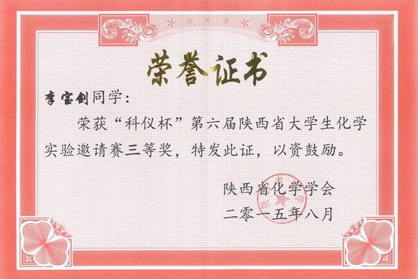 8月20至22日,由陜西省化學(xué)會(huì)主辦,寶雞文理學(xué)院承辦的“科儀杯”第六屆陜西省化學(xué)實(shí)驗(yàn)邀請(qǐng)賽暨第五屆陜西省化學(xué)實(shí)驗(yàn)中心聯(lián)席會(huì)議在寶雞文理學(xué)院舉行。我校代表隊(duì)?wèi){借扎實(shí)的理論功底及熟練的實(shí)驗(yàn)技能,獲得大賽一等獎(jiǎng)1項(xiàng),三等獎(jiǎng)2項(xiàng),實(shí)現(xiàn)了一等獎(jiǎng)從無到有的歷史性突破。