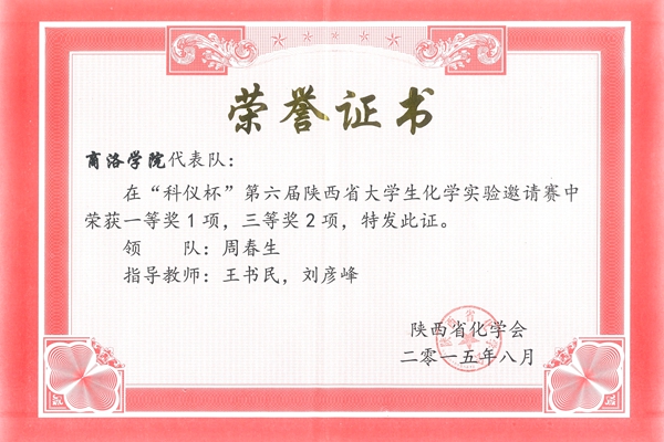 本次邀請(qǐng)賽共有來自西北工業(yè)大學(xué)、西北農(nóng)林科技大學(xué)、陜西師范大學(xué)、西北大學(xué)等23所高校的150多名師生參加。我校代表隊(duì)由周春生教授任領(lǐng)隊(duì),王書民副教授和劉彥峰老師任指導(dǎo)教師,2013級(jí)化學(xué)專業(yè)李鈺、馬雯秀與應(yīng)用化學(xué)專業(yè)李寶劍三位同學(xué)作為隊(duì)員參加邀請(qǐng)賽。競(jìng)賽分為實(shí)驗(yàn)理論筆試和實(shí)驗(yàn)技能測(cè)試兩個(gè)環(huán)節(jié),內(nèi)容涵蓋基礎(chǔ)化學(xué)實(shí)驗(yàn)中與無機(jī)化學(xué)、有機(jī)化學(xué)、分析化學(xué)和物理化學(xué)等相關(guān)的基礎(chǔ)知識(shí),以及無機(jī)分析實(shí)驗(yàn)、物理化學(xué)實(shí)驗(yàn)和有機(jī)化學(xué)實(shí)驗(yàn)3個(gè)實(shí)驗(yàn)項(xiàng)目。最終李鈺以優(yōu)異成績(jī)榮獲個(gè)人成績(jī)一等獎(jiǎng),馬雯秀與李寶劍分別榮獲個(gè)人三等獎(jiǎng)