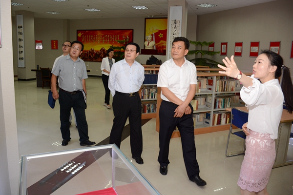 在校黨委書記張景書、校長劉建林、副校長范新會的陪同下,王紫貴一行深入我校各校區(qū),視察了陜西省尾礦資源綜合利用重點(diǎn)實(shí)驗(yàn)室、秦嶺植物標(biāo)本陳列室、辦學(xué)成就展廳、綜合教學(xué)樓工地、青年教師公寓工地、商洛紅色文化資料館、賈平凹暨商洛文化研究中心、就業(yè)洽談室等處,并參觀了我?!吧躺阶怨湃宋牡亍焙汀吧搪鍖W(xué)院賦”浮雕墻。