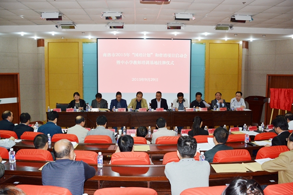9月29日上午,商洛市2015年“國培計劃”和省培項目啟動會暨中小學幼兒園教師培訓基地掛牌儀式在我校舉行。副校長劉寶盈,商洛市教育局副局長周春榮,學校教務處、繼續(xù)教育學院負責人,全國繼教網(wǎng)項目主管張文倩等出席了啟動會暨掛牌儀式。商洛市六縣一區(qū)教體局及教研室相關領導,商洛職業(yè)技術學院、商洛中學、商洛市小學、商洛市幼兒園等教學單位及全國繼續(xù)教育網(wǎng)代表參加了會議。