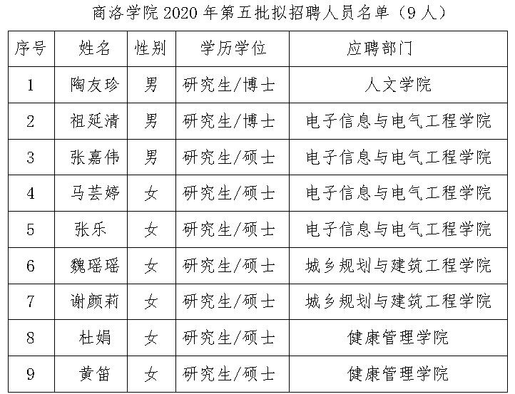 附件:商洛學(xué)院2020年第五批擬招聘人員名單