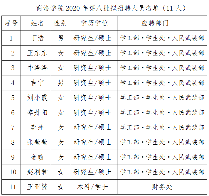 附件:商洛學(xué)院2020年第八批擬招聘人員名單