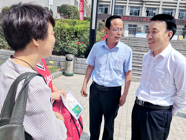 9月2日,天高氣爽,微風徐徐,我校2019級新同學陸續(xù)來校報到。學校迎新工作部門早早準備到位,師生按照迎新分工,展開熱情的雙臂忙碌而有序地迎接新生及家長到來。下午,黨委書記龍治剛、校長范新會、黨委副書記彭虎軍、副校長劉勇也到迎新現(xiàn)場親切看望新生及家長,為他們送上關心與關愛。