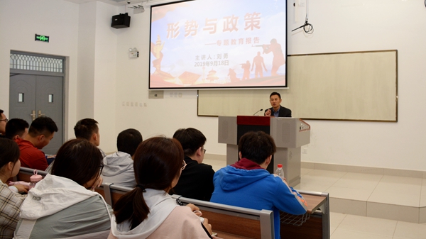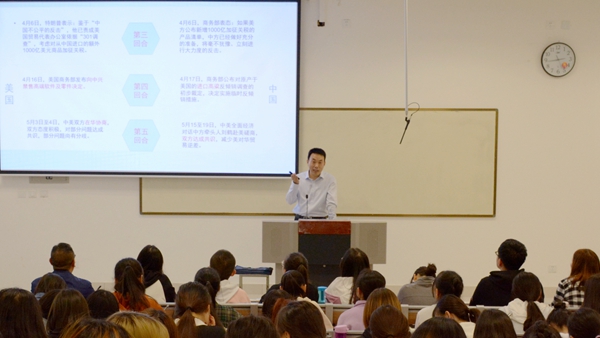校領(lǐng)導(dǎo)們以習(xí)近平新時代中國特色社會主義思想為指導(dǎo),結(jié)合青年學(xué)生成長階段特點,融匯文史哲等多個學(xué)科知識,用深邃的歷史眼光和寬廣的世界視野為學(xué)生細致剖析了中美經(jīng)貿(mào)摩擦的過程、本質(zhì)、原因、影響、中國的立場及策略。他們用風(fēng)趣生動的語言、豐富的教學(xué)案例、精美的多媒體課件,教育引導(dǎo)廣大學(xué)子自覺肩負起時代發(fā)展大任,堅定理想信念,厚植愛國主義情懷,發(fā)揚斗爭精神,增強“四個自信”,進一步把思想和行動統(tǒng)一到中央決策部署上來,把愛國熱情轉(zhuǎn)化為艱苦斗爭、振興中華的理性認識和具體行動,以學(xué)習(xí)為最大任務(wù),在學(xué)習(xí)中增長知識、錘煉品格,在實踐中增長才干、練就本領(lǐng),以真才實學(xué)服務(wù)人民,以創(chuàng)新創(chuàng)造貢獻國家。