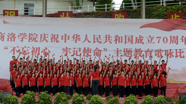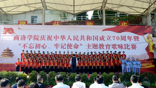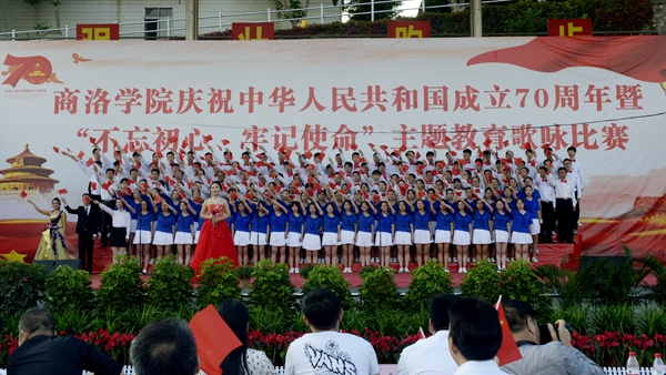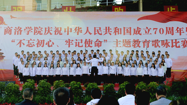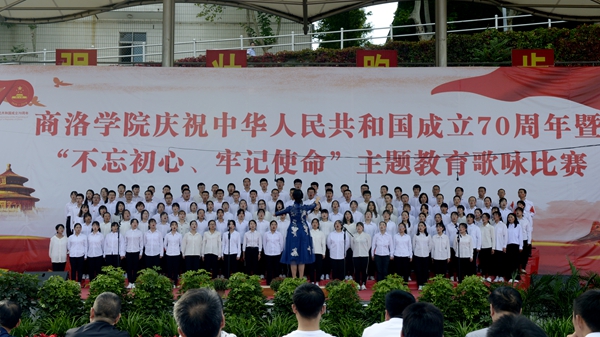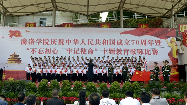 “憶往昔崢嶸歲月,抒今朝愛國情懷?!?月25日下午,我校慶祝中華人民共和國成立70周年暨“不忘初心、牢記使命”主題教育歌詠比賽在校體育場舉辦。校領(lǐng)導(dǎo)龍治剛、范新會(huì)、彭虎軍、劉寶盈、劉勇出席活動(dòng)并與師生同臺(tái)竟唱。全體教職工和2019級(jí)學(xué)生4000余人觀看了比賽。11支代表隊(duì)用優(yōu)美的旋律和嘹亮的歌聲謳歌中國共產(chǎn)黨帶領(lǐng)全國人民走過的波瀾壯闊的70年光輝歷程,表達(dá)對(duì)祖國母親的熱愛與祝福。