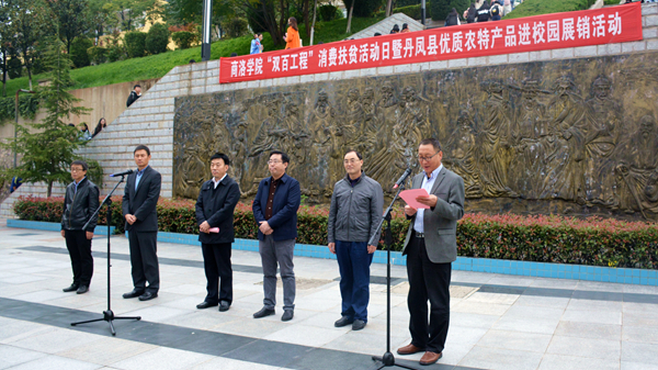 10月17日,時(shí)值第6個(gè)國家扶貧日和第27個(gè)國際消除貧困日,為進(jìn)一步推進(jìn)“雙百工程”脫貧攻堅(jiān)活動(dòng)深入開展,號(hào)召全校師生投身脫貧攻堅(jiān)熱潮之中,我校與丹鳳縣人民政府聯(lián)合舉辦了“商洛學(xué)院‘雙百工程’消費(fèi)扶貧暨丹鳳縣優(yōu)質(zhì)農(nóng)特產(chǎn)品進(jìn)校園”展銷活動(dòng)。校黨委副書記彭虎軍、丹鳳縣副縣長郝新軍出席活動(dòng)啟動(dòng)儀式并講話,副校長劉寶盈主持儀式,副校長劉勇出席。我校相關(guān)職能部門負(fù)責(zé)人、教師代表,丹鳳縣教科體局、農(nóng)業(yè)農(nóng)村局負(fù)責(zé)人等參加活動(dòng)啟動(dòng)儀式。