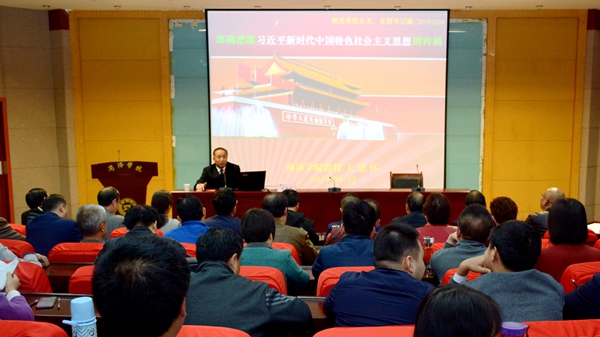 根據(jù)我?!安煌跣?、牢記使命,做新時(shí)代合格黨支部書記”培訓(xùn)班課程安排,10月30日下午,校紀(jì)委原書記王思懷教授以《準(zhǔn)確把握習(xí)近平新時(shí)代中國特色社會(huì)主義思想的內(nèi)涵》為題為全校黨總支書記、黨支部書記作專題報(bào)告。